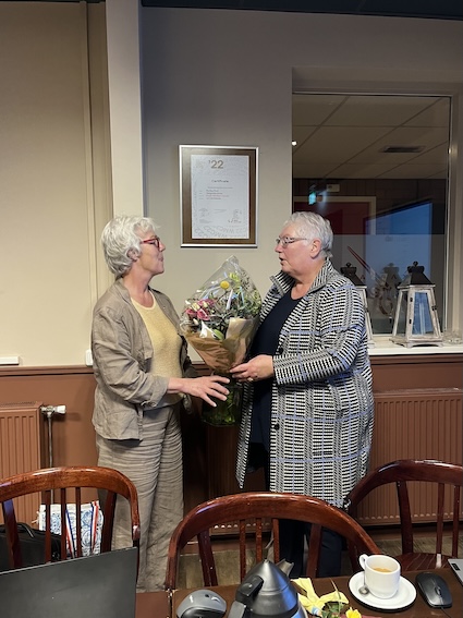 Tijdens de laatste vergadering is het voorzittersstokje van Greet Nieuwland overgedragen aan Lea van der Tuin. Greet is vanaf de start van het BaronTheater betrokken geweest en heeft vele uren in het theater doorgebracht. Haar toewijding en inzet hebben een onschatbare waarde gehad voor de organisatie. Nu Lea het voorzitterschap heeft overgenomen, kan Greet een klein stapje terugdoen en zich voorbereiden op een nieuwe fase in haar leven.
